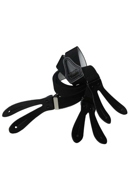 De Sterk Zwart met leertjes is een compleet zwarte bretel met Stevig en duurzaam elastiek. Deze bretel heeft geen klemmen maar Lederen patten.