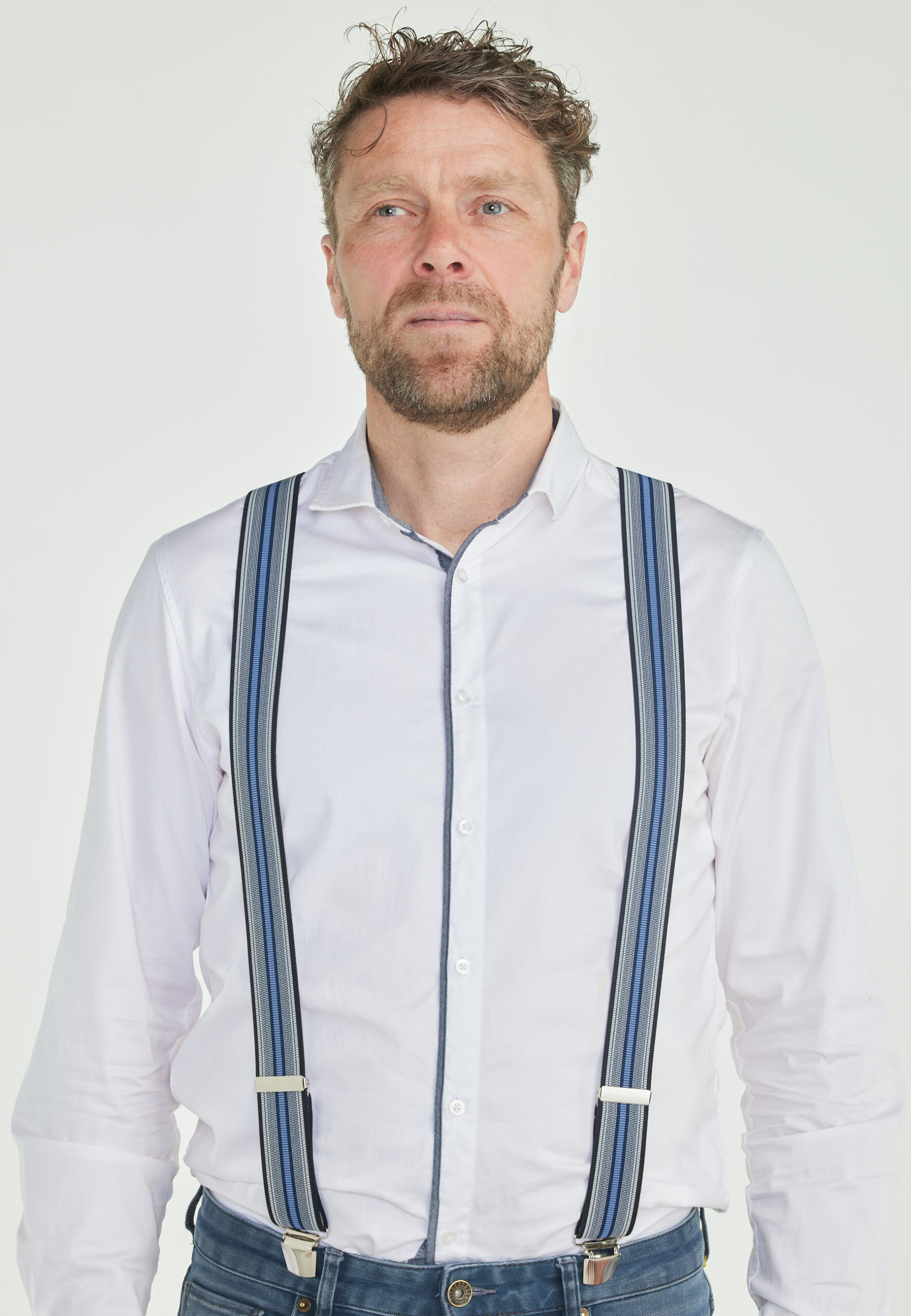 Mooie bretel met verschillende tinten. Het achterstukje is naar kleur aangepast. Het rugstuk is voorzien van 100% Rundleer, en een zilver kleurige clip.
