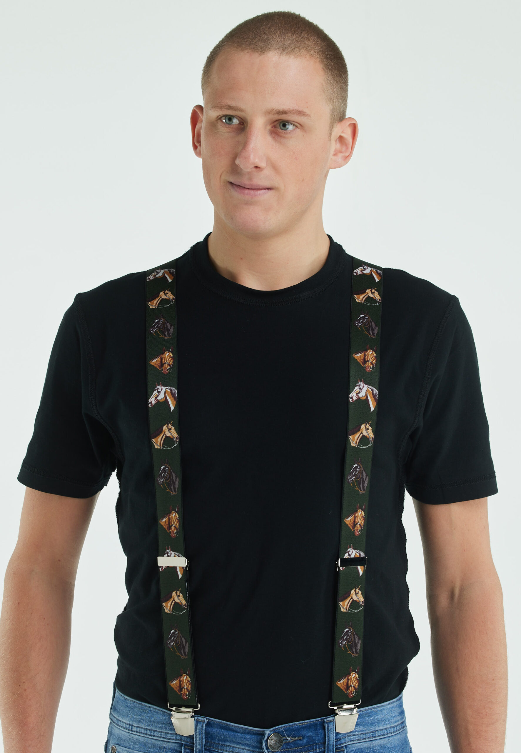 Onze Horses Bretel! Een mooie bretel met paardenprint. Voor de liefhebbers van paardensport & Natuur. Het rugstuk is voorzien van 100% Rundleer en een zilverkleurige stevige clip.
