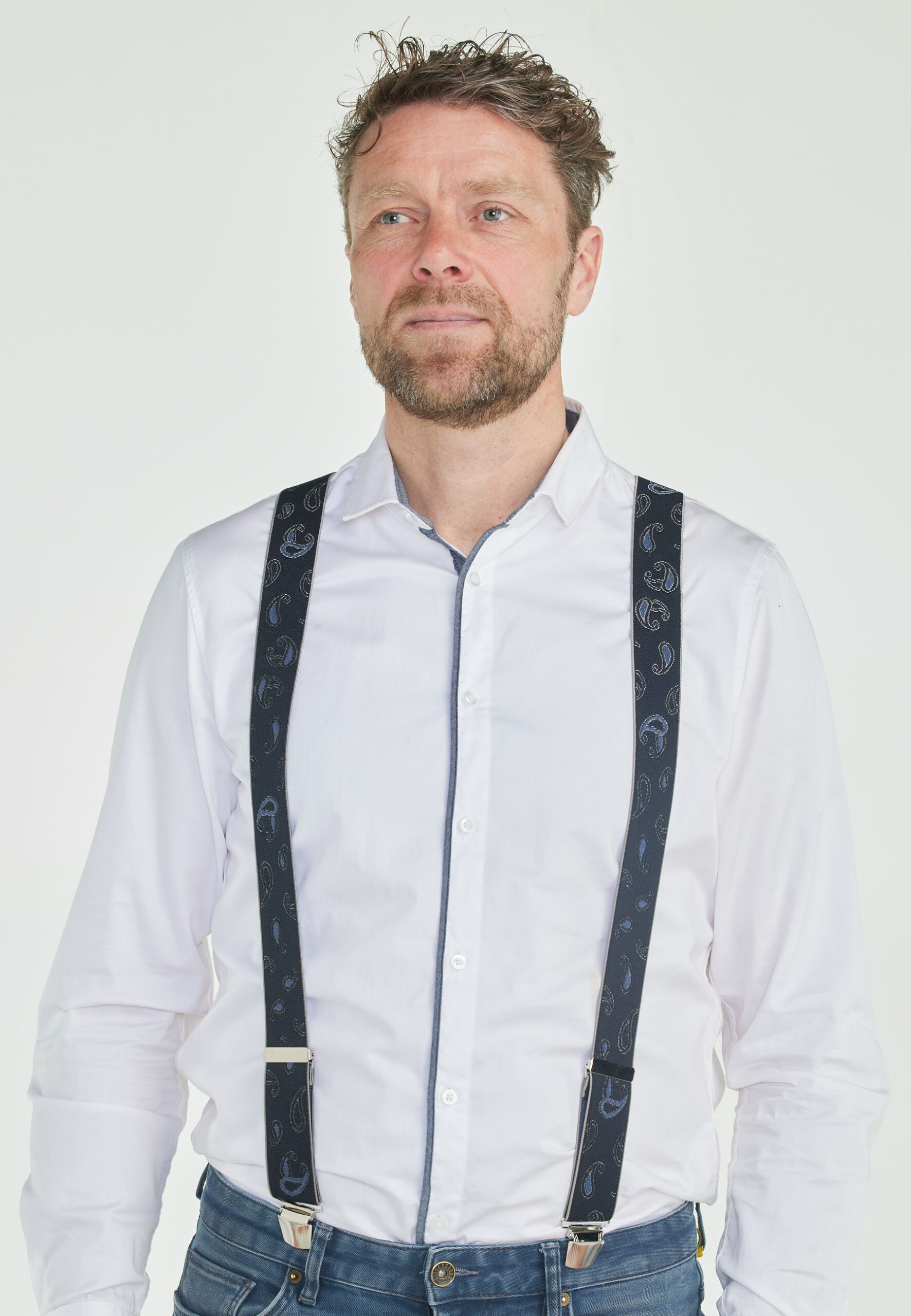 Deze Paisley bretel is handgemaakt door onze beste vakmensen. Een mooi waterdruppel-motief tekent de bretel. Afgewerkt met een mooi dubbel stiksel op het lederen achterkantje, stevige clips en lekker zacht elastiek.