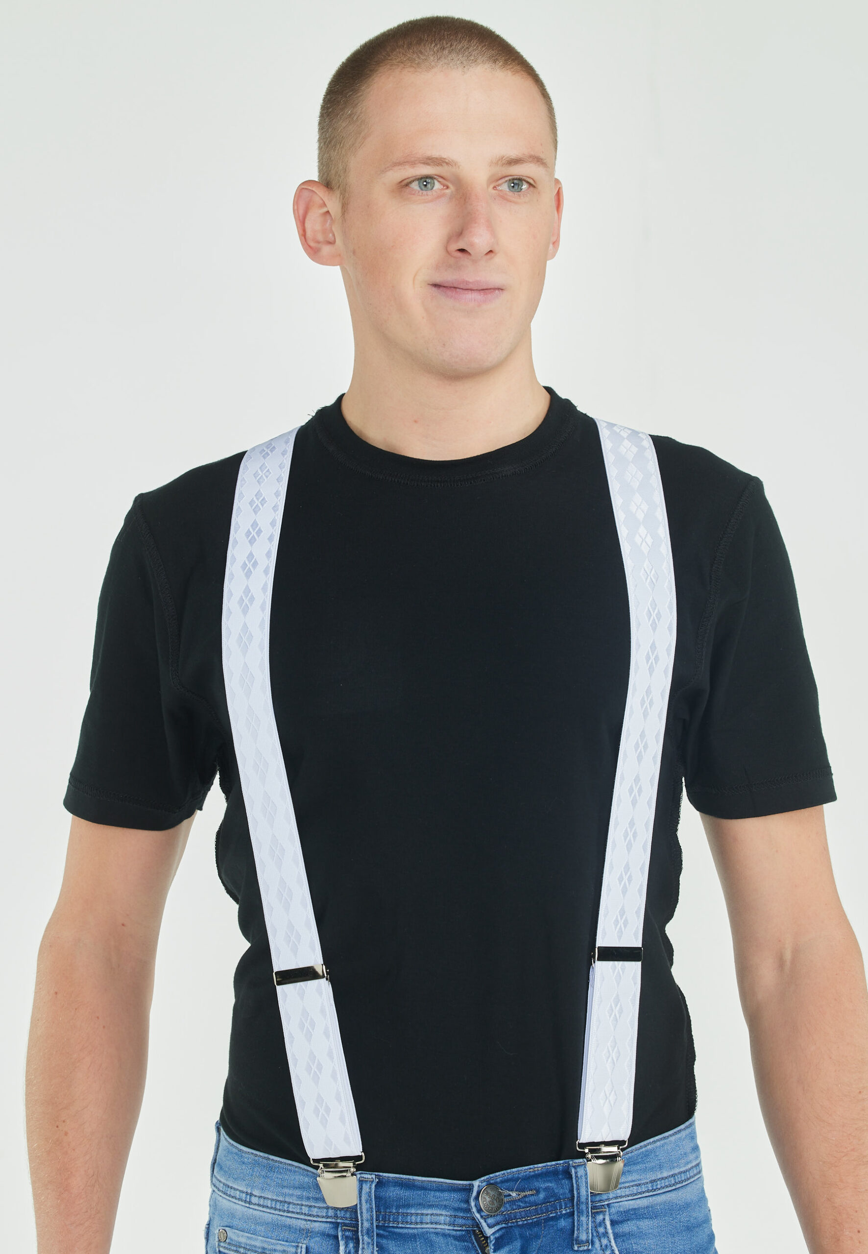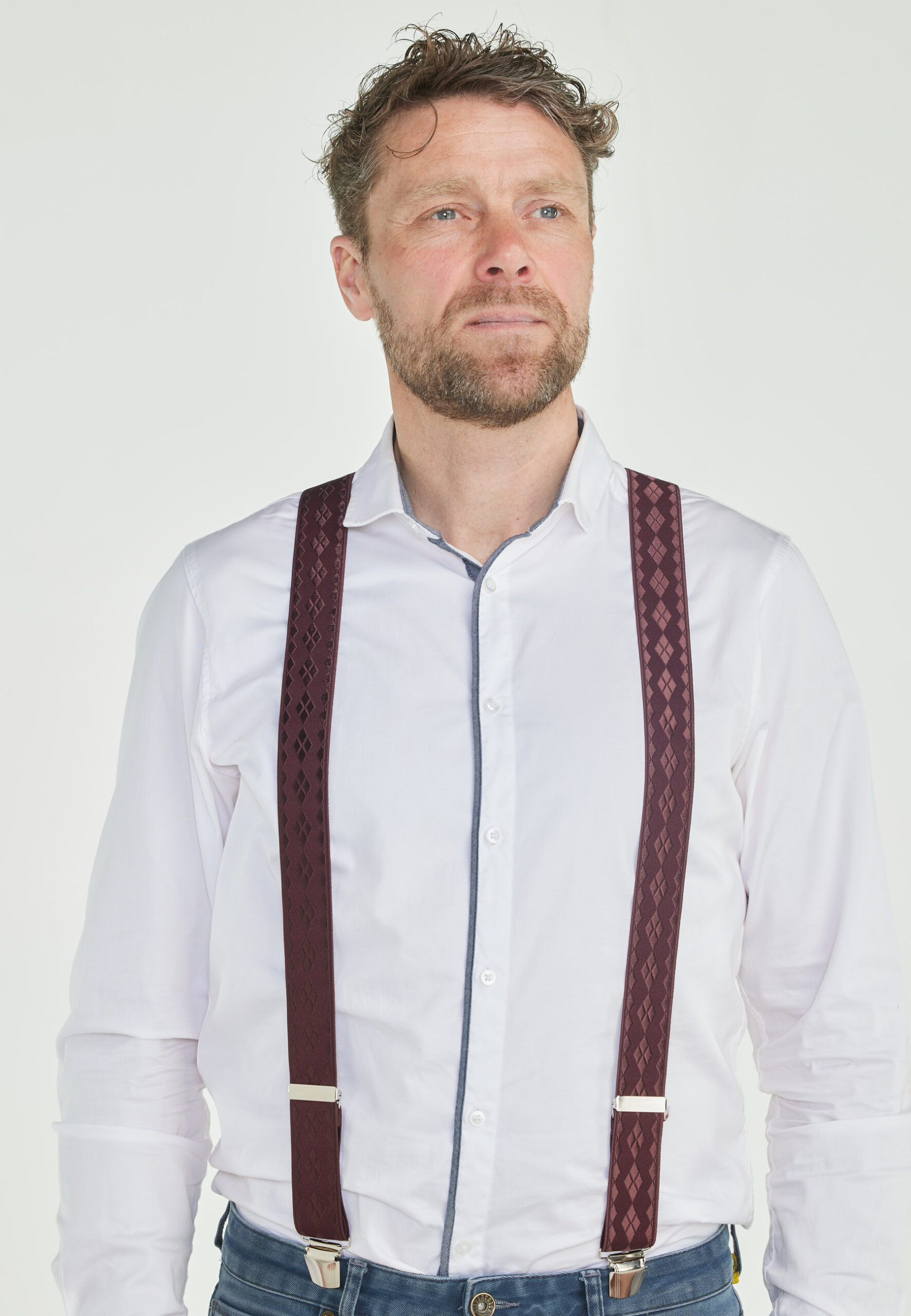 Een geruite bretels passend bij elke gelegenheid. Keuze uit verschillende kleuren. Het rugstuk is voorzien van 100% leer, en een zilver kleurige clip. Dankzij de verstelbaarheid past deze bretel vrijwel iedereen.